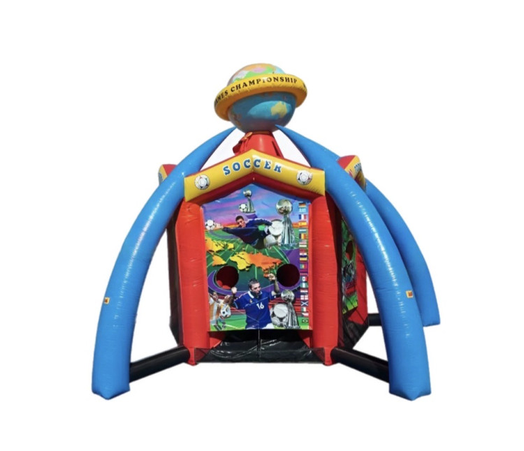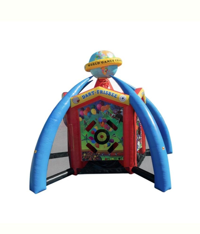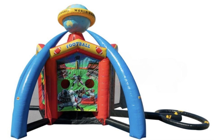 No matter the sport, World Sports Games has the game kids want to play! Choose from these popular sports activities: football, soccer, basketball, baseball, dart/Frisbee, all under one inflatable play structure. Encourage team spirit and friendly competition as children play their favorite game simultaneously and facilitate variety as participants have the chance to play each sport. This colorful inflatable sports game adds great value to an FEC. Check out the new Junior Sport Games that offers the exact same games as its big brother, but in a perfect size for smaller kids. Add this interactive attraction to any indoor or outdoor event, from a gymnastics club to a backyard party!